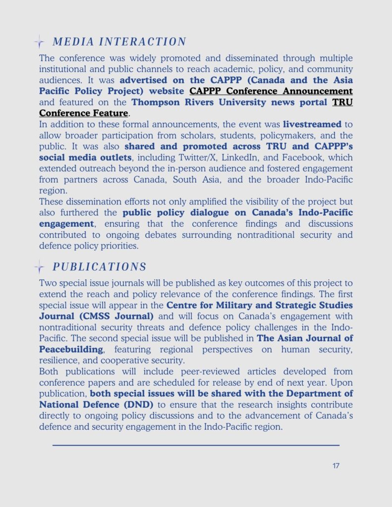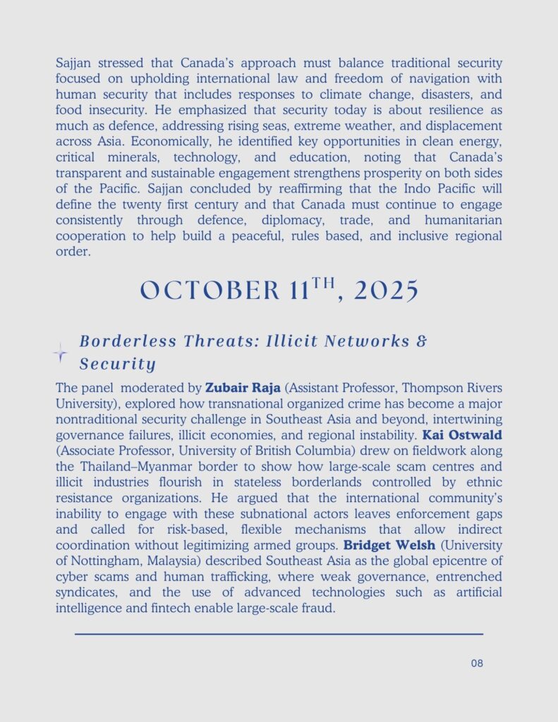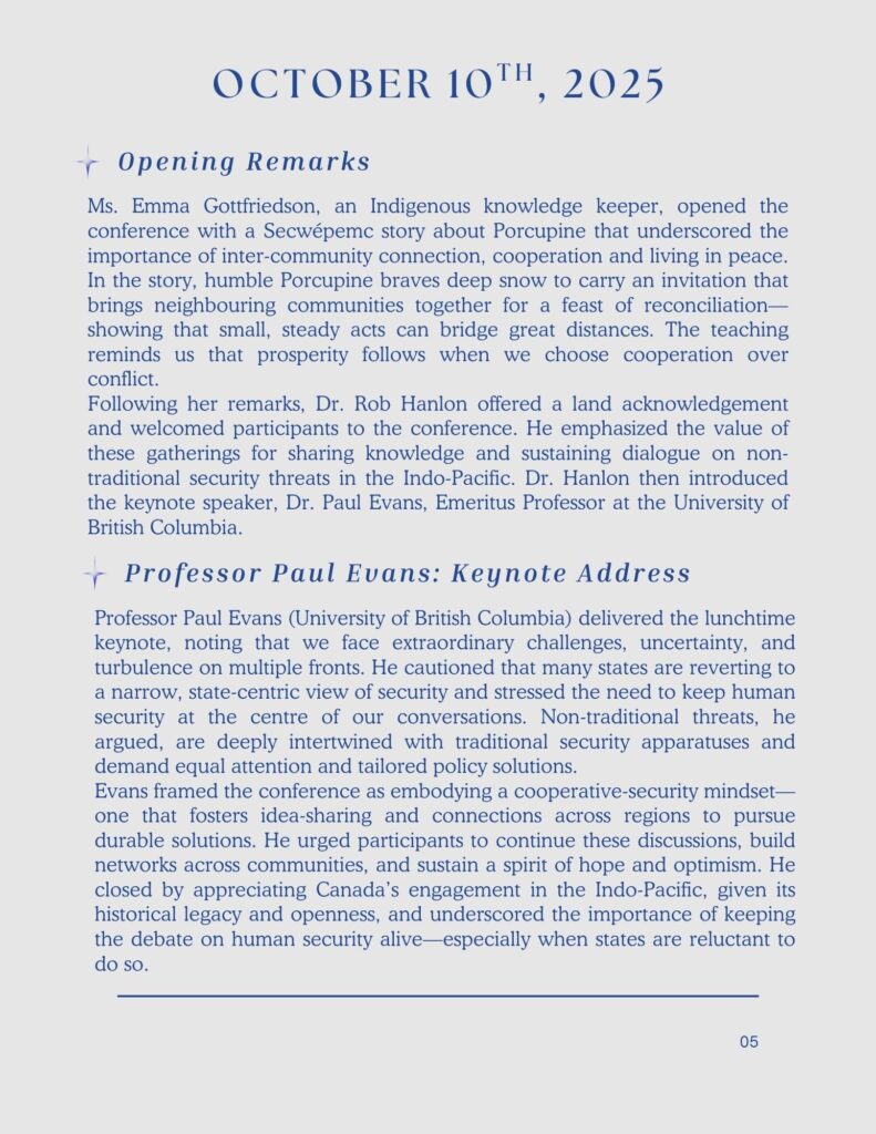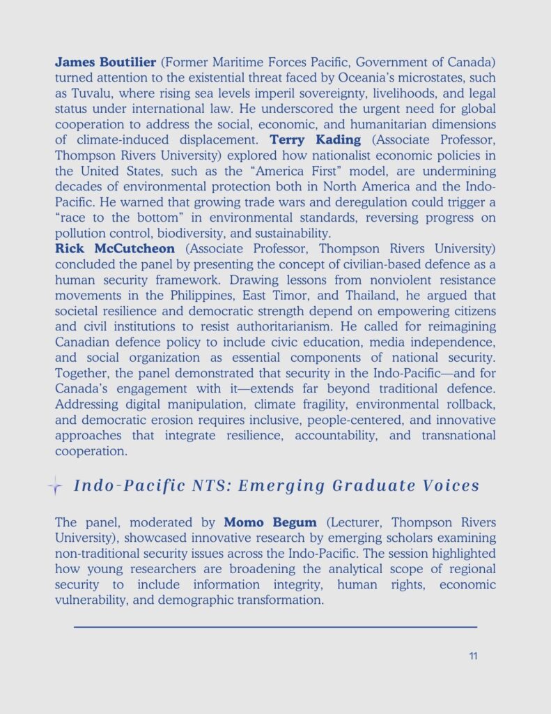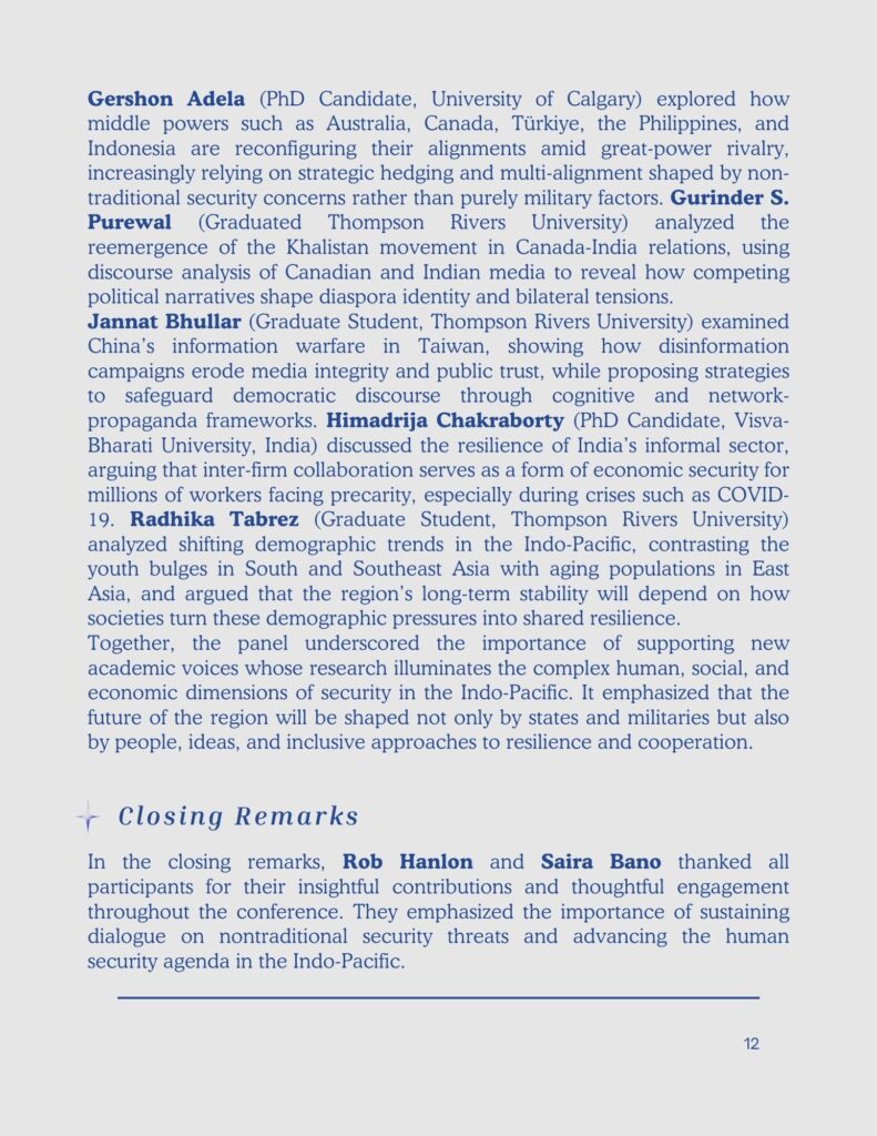 The conference will feature a diverse range of panels and workshops focusing on innovative solutions to emerging security challenges in the Indo-Pacific. It will also provide a platform for fostering collaboration between academia, government, defense, and civil society while mentoring the next generation of experts.